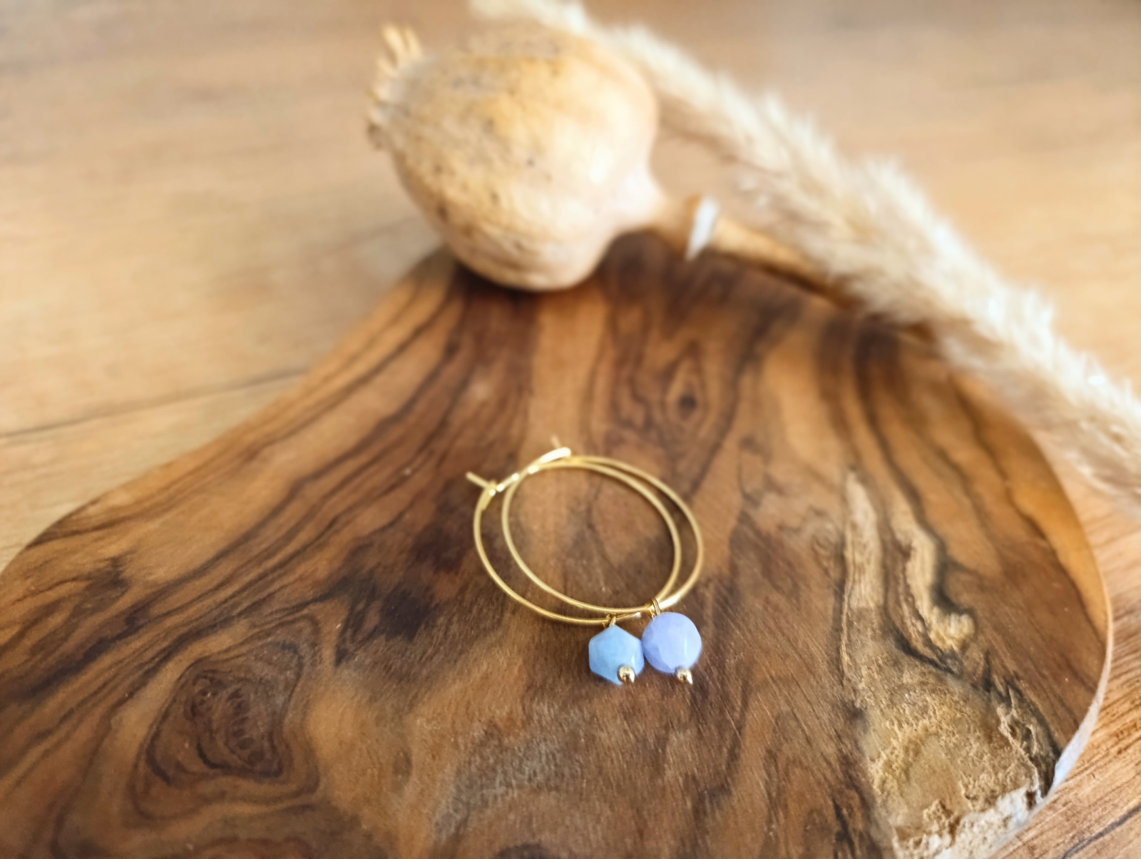Materiál: Melónový Turmalín (6 mm), náušnicové kreole antialergické z nehrdzavejúcej ocele, vo farebnom prevedení zlato (priemer 25 mm)