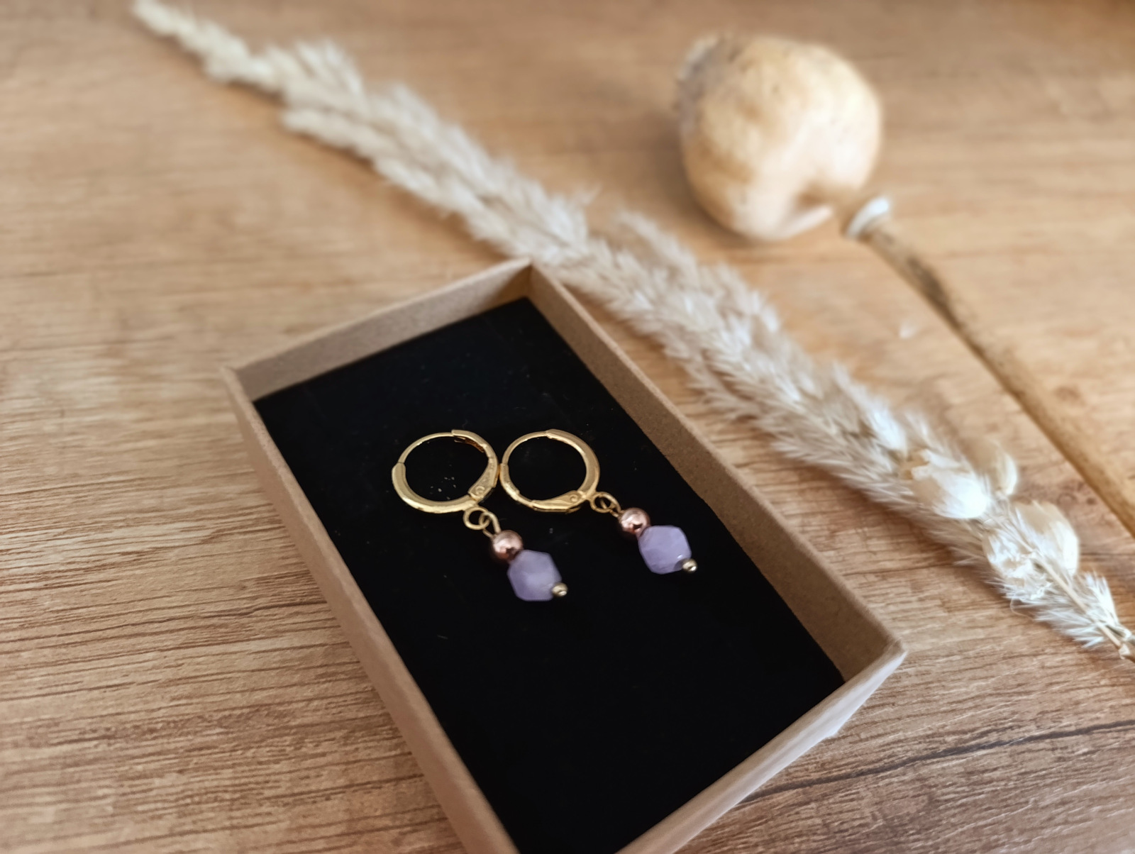 Náušničky z minerálov Angelit a Hematit v zlatom farebnom prevedení.