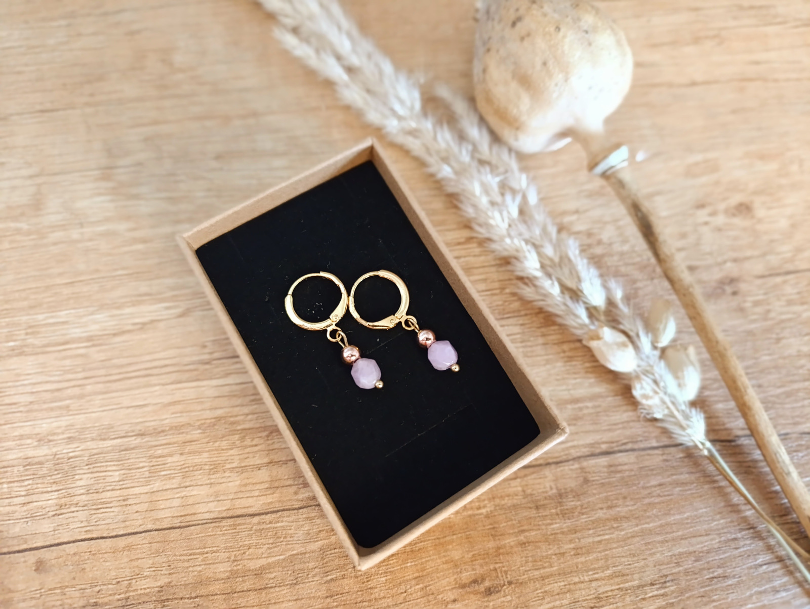 Materiál: Angelit (6 mm), Hematit (4 mm), zapínanie pokované 18 K zlatom