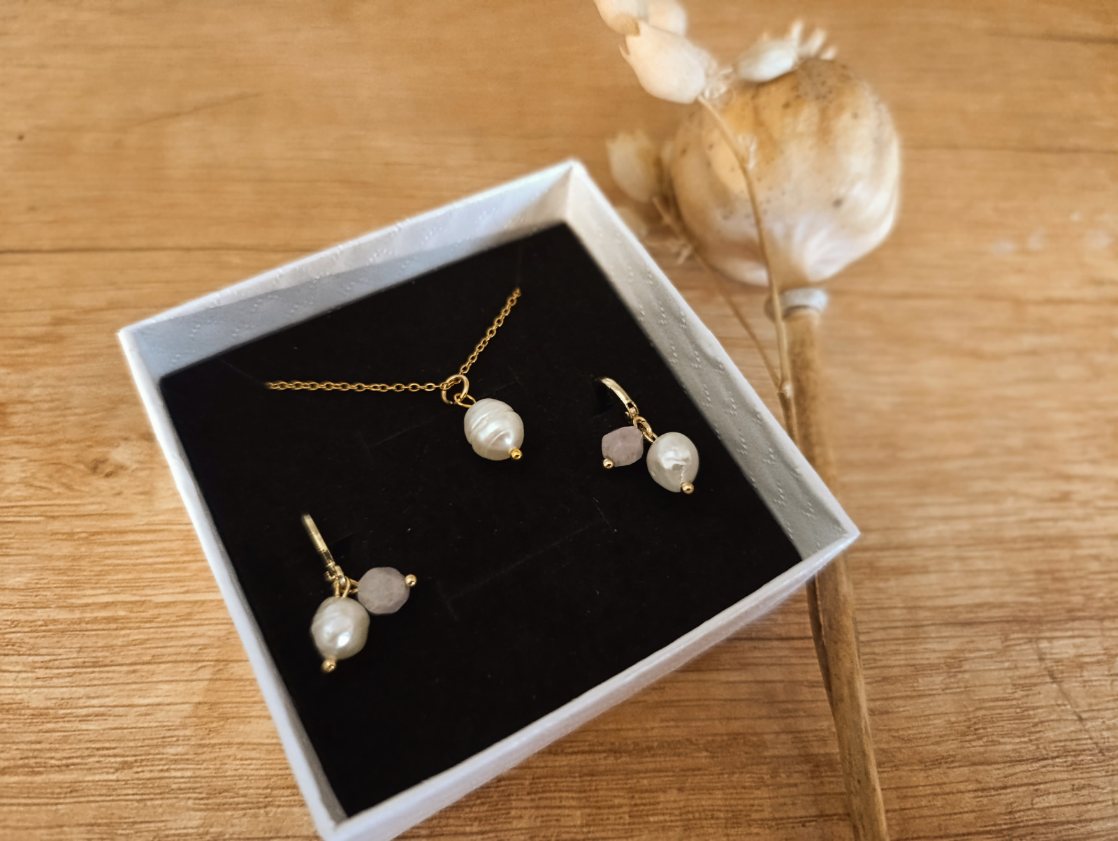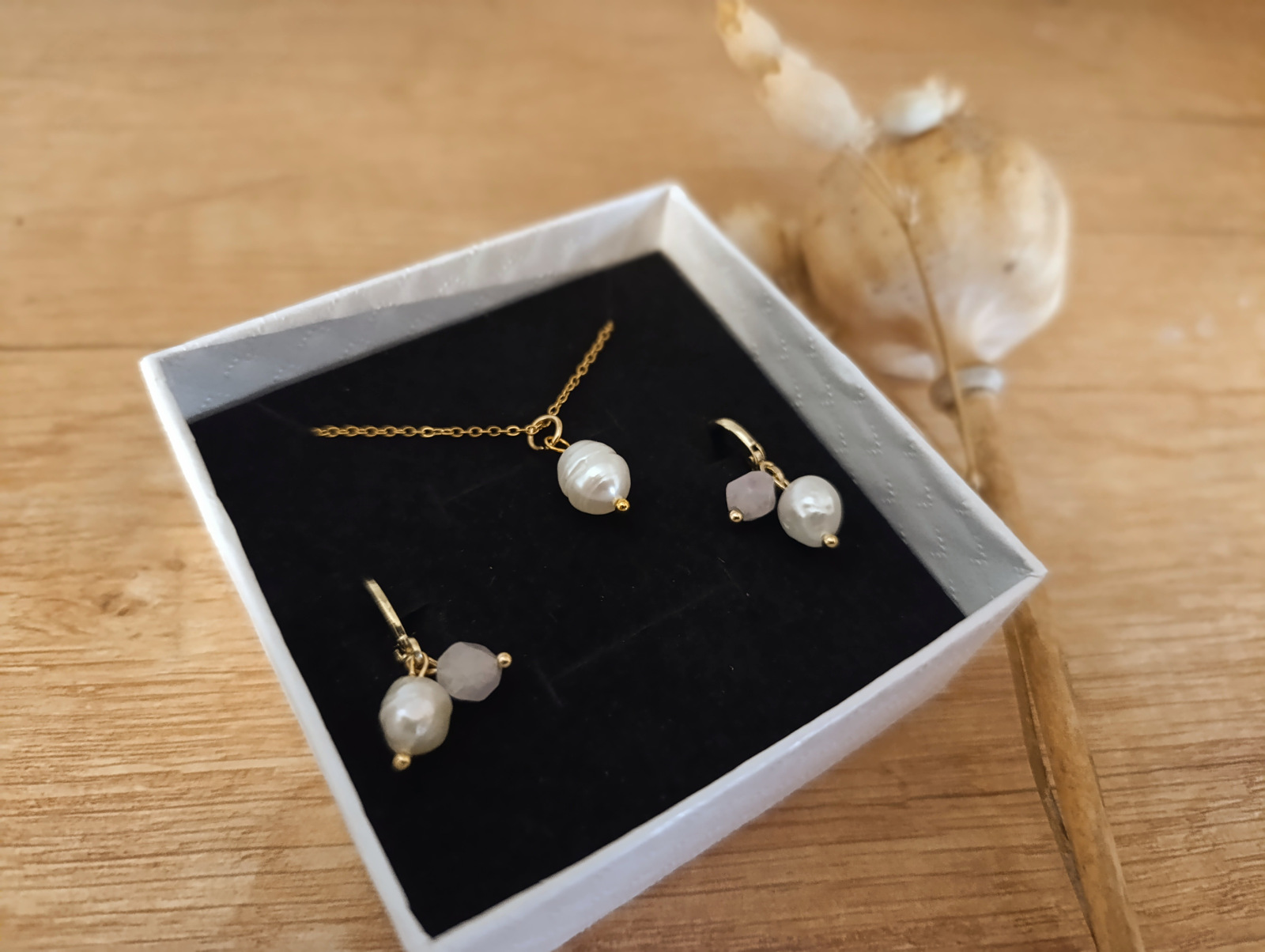 Podpor svoje ženstvo a krásu vďaka tomuto magickému setu s Barokovou perlou a Angelitom.